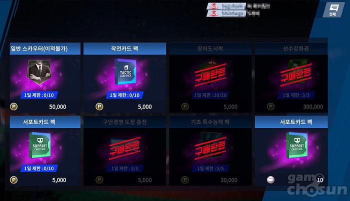 따라서 최대한 구입할 수 있는 아이템은 구입하는 것이 좋은데, 필수적으로 구매해야하는 아이템으로는 콜업 카드 5장과 일반 스킬블록 박스 5개, 선수강화권 3장, 장어도시락 20개, 기초 특수능력 팩 5개 등이 있다. 현재는 각종 이벤트를 통해서 PT 재화 수급이 어느정도 용이함에 따라, 최대한 모든 PT 재화를 확보하면서 아이템을 구입하도록 하자.