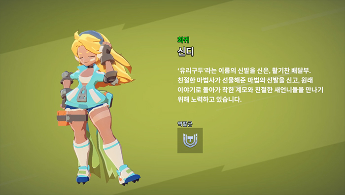 예를 들어 돌격수 '신디'의 경우 유리구두를 신고 적을 공격하는 돌격수 레전드다. 이름과 유리구두에서 알 수 있듯 신데렐라를 모티브로 하고 있는데, 재미있는 점은 스토리에서 '착한 계모와 친절한 새언니들이 있는 원래 이야기'로 돌아가려 한다는 내용이 있다, 원작 신데렐라와는 반대의 스토리, 그리고 유리구두를 무기로 발차기를 구사하는 신데렐라는 신선한 재미를 준다.