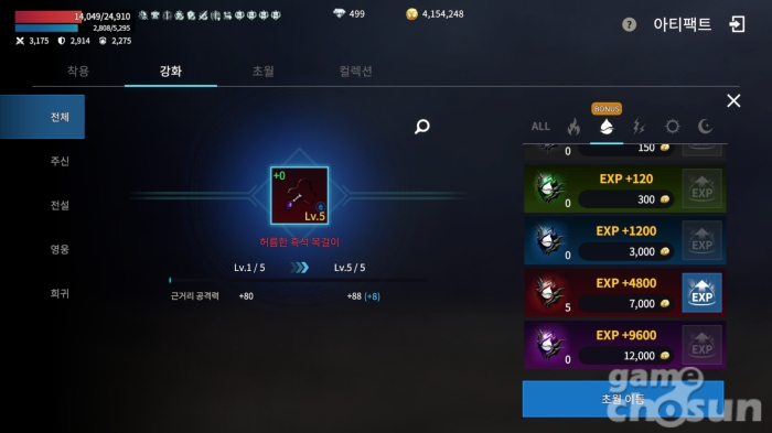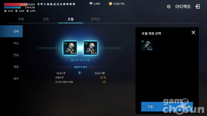 초월 단계마다 연관된 능력치와 강화 최대 레벨이 오른다 = 게임조선 촬영