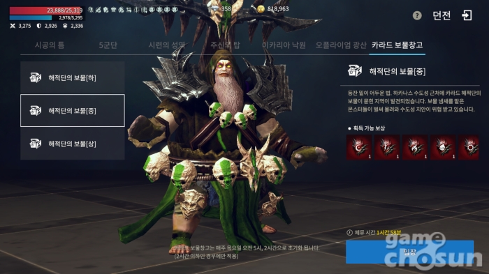 강화석을 효율적으로 얻을 수 있는 던전의 카라드 보물창고 = 게임조선 촬영