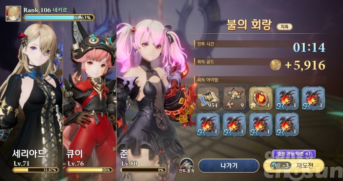 수월한 공략을 위해선 핵심 캐릭터들을 충분히 육성할 필요가 있다 = 게임조선 촬영