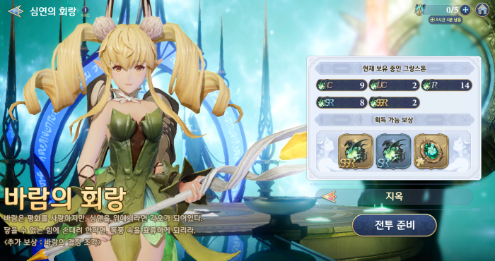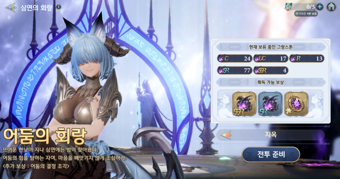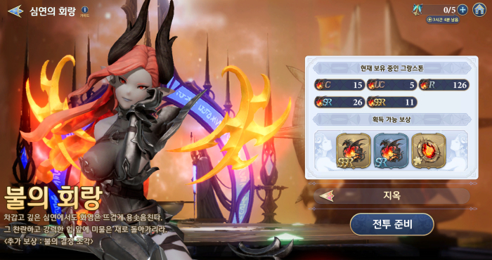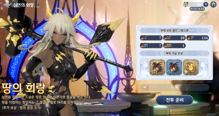 지옥 난이도는 차원의 열쇠 세 개를 소모해 입장할 수 있으며, SSR등급 그랑스톤과 SR등급 그랑스톤, 속성 별 결정 조각을 보상으로 지급한다. 결정의 경우 그랑스톤과 마찬가지로 한계돌파 5단계에 사용하는 재료지만, 업데이트 전에는 업적과 다이아 구매 외엔 얻기 힘들었지만, 지옥 난이도 추가로 꾸준한 수급이 가능하게 됐다. 일주일 동안 꾸준히 지옥 난이도를 공략한다면 결정을 최소 네 개 얻을 수 있는 것이다.