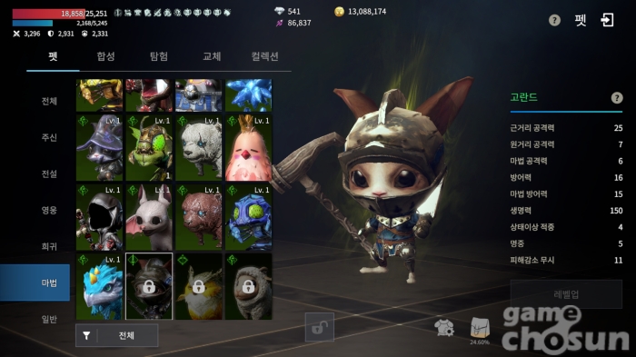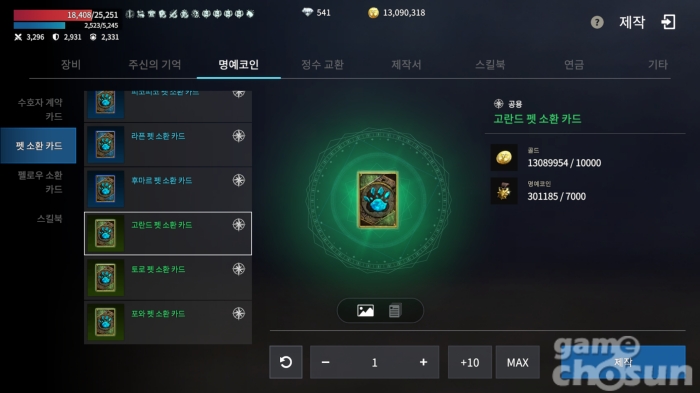 정말 딱 명예코인으로 만드는 펫 세 종류만 비어 있는 상황 = 게임조선 촬영