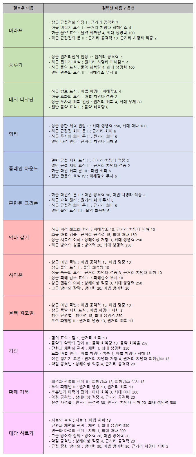 따라서 컬렉션을 조금이라도 완벽하게 완성하고 싶다면 명예코인으로 제작할 수 있는 수호자, 펫, 펠로우를 직접 사용하진 않아도 한 번씩은 제작해 주는 것이 좋다.