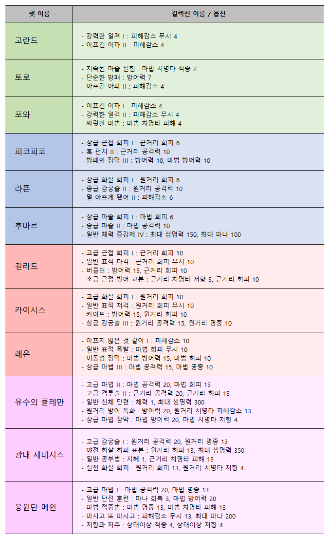 ■ 명예코인 전용 펫 컬렉션