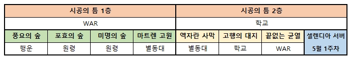 다만 이번 주에는 하위 지역에 세금을 걷을 수 있는 시공의 틈 2층만 Arris 길드에게 넘겨준 후 고행의 대지까지는 다른 길드가 차지하고 있는 모습을 보여주고 있다. 경쟁 끝에 사신 길드가 차지한 것인지 일종의 암묵적인 합의가 있었는지는 알 수 없으나 어느 쪽이든 PVP 기록이 없는 Arris 길드를 제일 가치가 높은 시공의 틈 2층 점령 길드로 올려둔 것으로 보아 아리스 길드의 서버 장악력이 높음을 보여주고 있다.