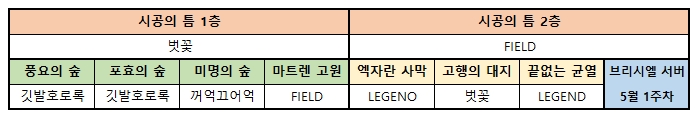 벗꽃 길드 외에도 LEGENO 길드가 새롭게 지역을 점령하며 이름을 드러냈는데 PVP 기록이 전혀 없는 것으로 보아 정황상 부길드로 보인다. 존버단의 경우 지역을 한곳도 점령하지 않은 모습을 보여주며 패권 싸움에서 밀려나고 있는지 지켜볼 필요가 있어 보인다.
