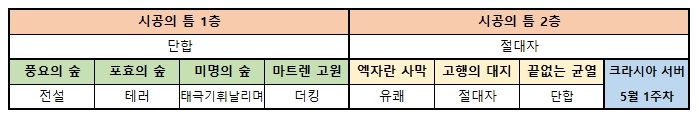 크라시아 서버는 기존보다도 지역 점령 관심도가 크게 오른 모습을 보여줬다. PVP 횟수 또한 다른 서버와 비교해도 높을 정도로 더욱 많은 경쟁이 이뤄졌으며 절대자 길드와 단합 길드가 시공의 틈을 비롯해 최상위 지역을 양분했다.
