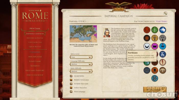 그래도 역사 시뮬레이션 게임이라는 장르에 초점을 맞추면 리마스터는 분명 한 발 진보한 모습을 보여줬다. 원작에선 적으로만 등장하던 스키타이나 누미디아, 이베리아 같은 세력을 이제는 직접 선택할 수 있기 때문이다. 주인공인 로마를 주연 자리에서 몰아내고 자신의 세력을 최고로 만드는 재미를 새롭게 느낄 수 있다. 게다가 리마스터는 본편뿐만 아니라 추가 콘텐츠인 '바바리안 인베이전'과 '알렉산더'가 포함된 합본 형태로 출시됐기 때문에 이런 재미는 배가 됐다.