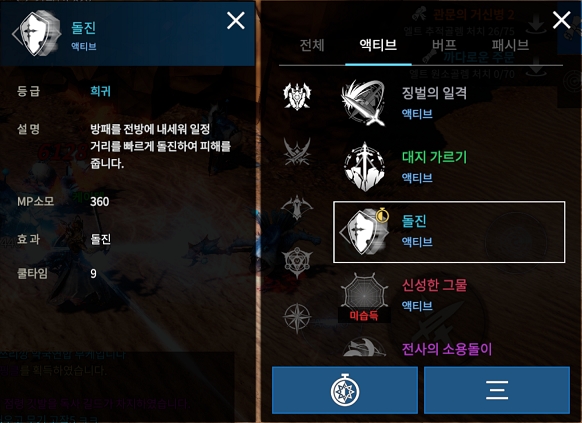 특히 돌진의 경우 사냥할 때는 명백히 모든 스킬의 하위 호환 격이기 때문에 다른 스킬을 쿨타임마다 사용해도 MP가 모자라지 않을 경우에나 사용 주기 설정을 한 뒤 올려볼만하다.