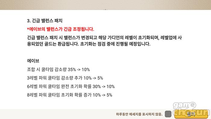 긴급 밸런스 패치 내역 = 게임조선 촬영
