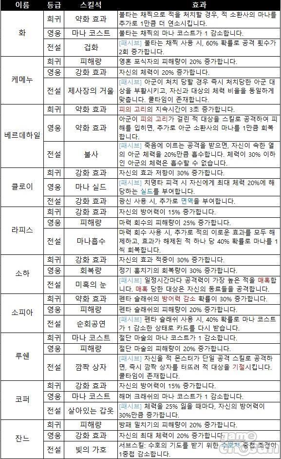 이에 게임조선은 각 몬스터에 장착할 수 있는 스킬석을 한 눈에 파악할 수 있도록 스킬석 정보를 정리해봤다.