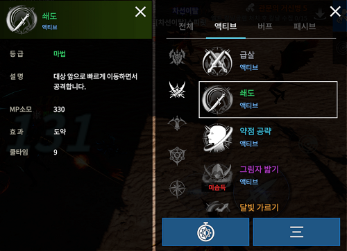 다만 액티브 스킬의 경우 공격 효과에 부가 효과만 적혀있고 어느 정도 피해를 주며 범위는 얼마나 되는지 적혀 있지 않아 정확한 효과를 가늠하기 힘들다.