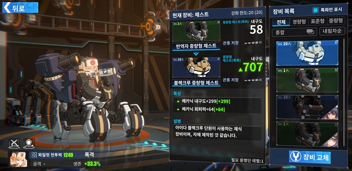 이벤트 스토리 진행, 던전 파밍 외에 다양한 방법을 통해 파츠를 모을 수 있으며, 수집한 각종 파츠들을 이용해 자신에게 꼭 필요한 성능의 메카닉을 만들 수 있다는 부분도 상당히 매력적이다.