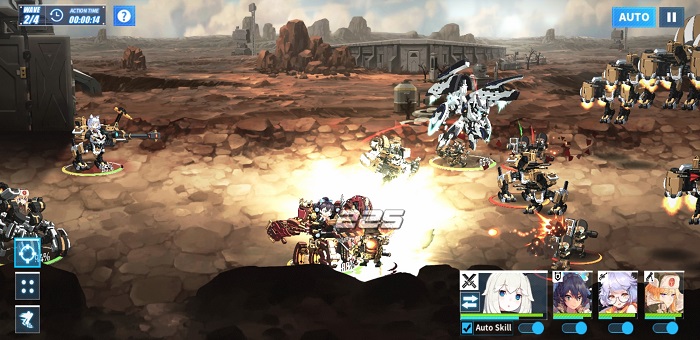 전투는 네 명의 미소녀 파일럿들을 한 팀으로 구성해 진행한다. 근거리, 중거리, 원거리 등 공격에 따른 조작감이 일품이며, 유저가 직접 전투에 참여함으로써 짜릿한 액션 쾌감을 맛볼 수 있다.