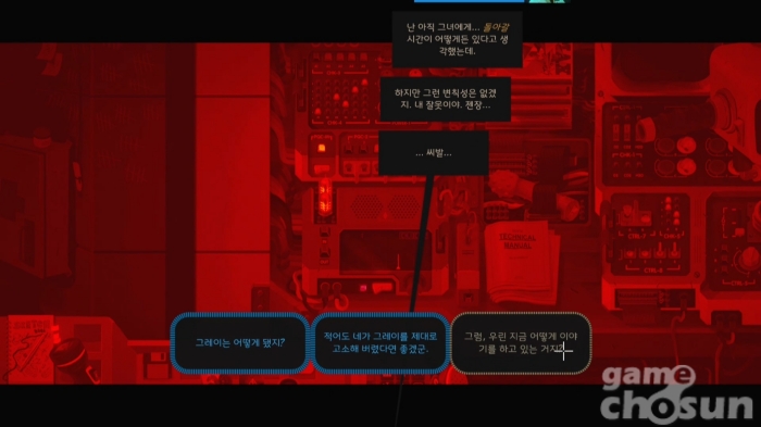 등장인물의 대사에선 비속어와 함께 절실한 긴박함이 느껴진다 = 게임조선 촬영