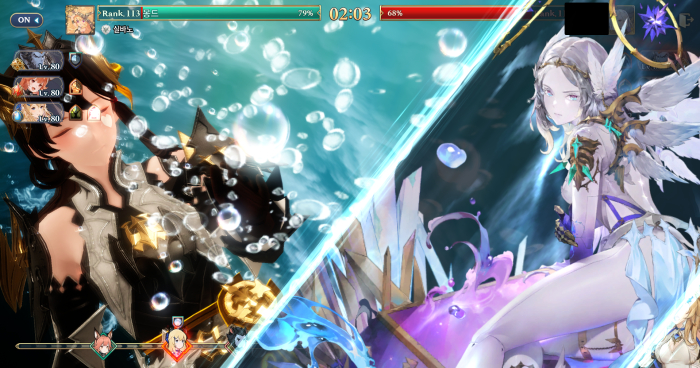 예를 들어 나마리에에게 윈이 공격받아도 회복과 부활로 살리고, 그 사이 상성 우위인 큐이가 나마를 처치하는 윈큐세 조합의 정적 전법이 그대로 통합니다. 덕분에 나마리에는 괜찮은 천사 그랑웨폰을 받았어도 채용률이 낮을 수밖에 없다고 생각합니다. 저도 윈큐세 조합을 사용하면서 상대 조합에 나마리에가 있으면 전투력 차이가 나도 이길 수 있다는 생각에 공격하고 보는 편입니다.