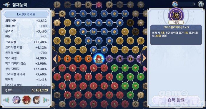 잠재능력 다섯 줄까진 라스와 동일, 크리스탈리제이션이 애매하지만 딜탱으로 쓰기 나쁘지 않은 수준 = 게임조선 촬영