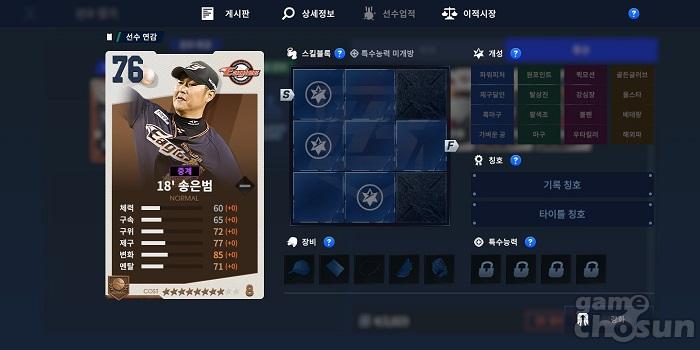 마지막 한화의 추천 선수는 18'송은범이다. 송은범은 8코스트, 오버롤 76의 기본 스탯을 가졌으며 변화 85, 제구 77, 구위 72의 세부스탯을 보여준다. 이 중 85의 높은 변화 스탯은 오버롤 77, 9코스트의 05'최영필을 제치고 송은범을 추천하는 결정적인 이유다.