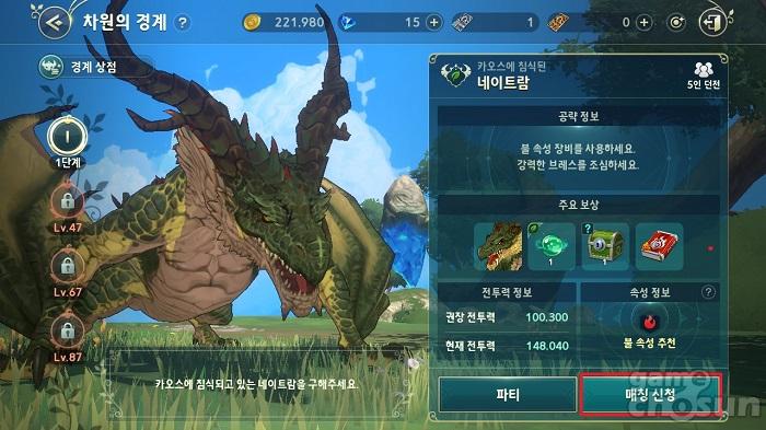 차원의 경계는 보상이 호화로운 대신 높은 난이도를 자랑한다. 처음 맞이하는 보스 '네이트람'의 권장 전투력이 100,300을 넘기 때문에 각별한 대비가 필요하다. 따라서 앞선 콘텐츠로 레벨과 장비, 이마젠을 충분히 강화하고 콘텐츠 적정 전투력을 맞춰 도전할 것을 권한다.