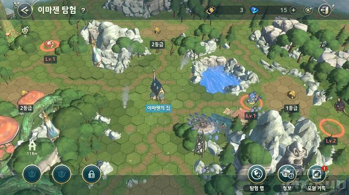 이마젠 탐험은 하루 3번 무료로 입장할 수 있는 콘텐츠다. 아군 이마젠을 파견해 타일에 배치된 '채집지'를 점령하거나 '야생 이마젠 부대'를 토벌해 골드, '프리즘', '옵시디언'을 얻을 수 있다. 채집지와 야생 이마젠 부대는 6시간 단위로 재등장한다.