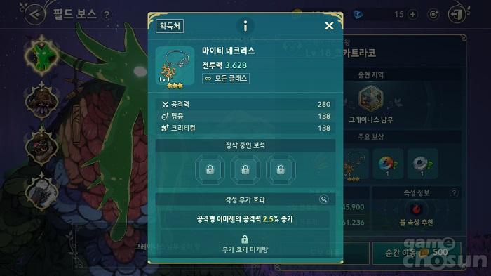 필드 보스 토벌로 획득할 수 있는 목걸이는 공격력, 명중, 크리티컬이라는 핵심 스탯을 증가시켜준다 = 게임조선 촬영