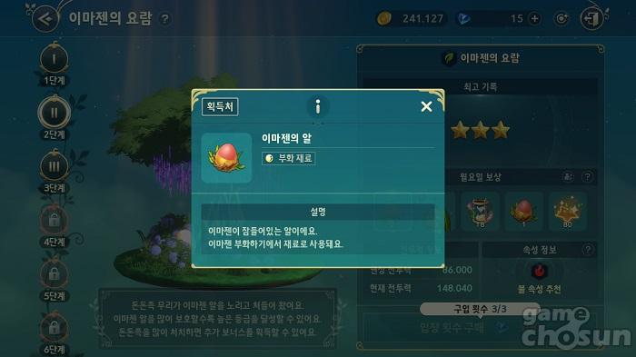 이마젠 요람 클리어 시 획득할 수 있는 '이마젠의 알'은 부화하기를 통해 이마젠을 얻을 수 있는 중요한 재료다 = 게임조선 촬영