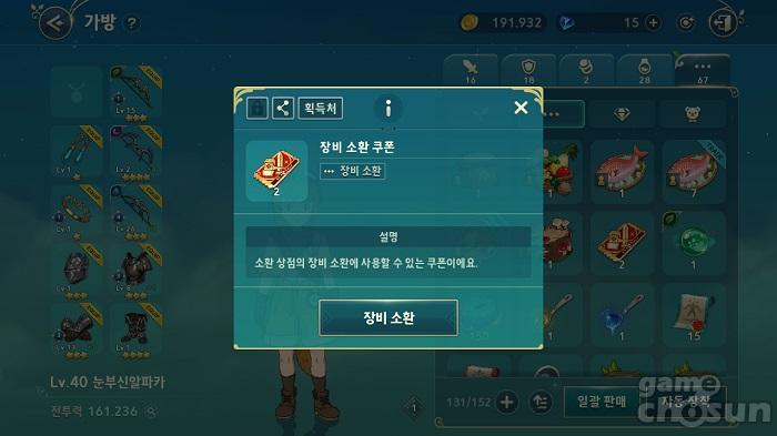 제비상회 의뢰 완료 시 일정 확률로 등장하는 장비 소환 쿠폰 = 게임조선 촬영