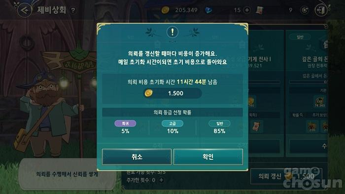 골드를 소모해 의뢰 목록을 갱신하고 높은 등급의 의뢰를 노려보자 = 게임조선 촬영