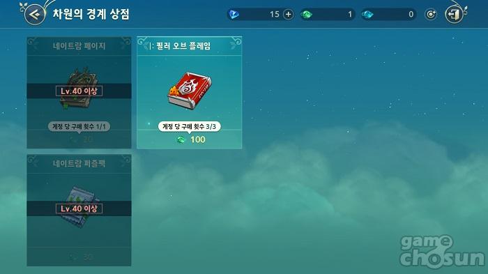 차원의 경계 클리어 시 획득할 수 있는 '정수'는 각종 아이템과 교환할 수 있다 = 게임조선 촬영