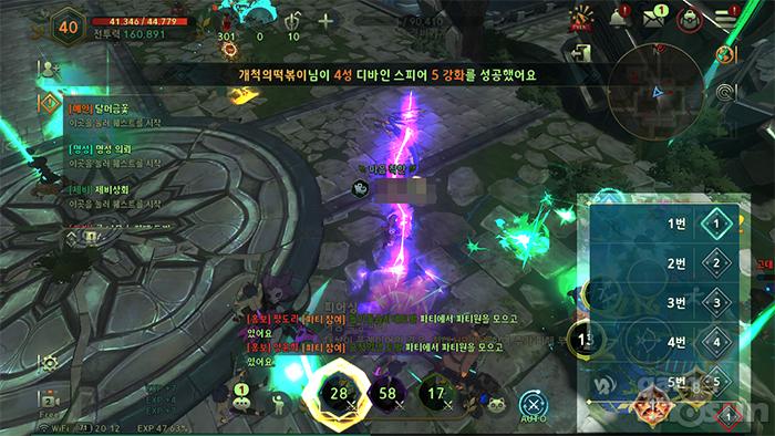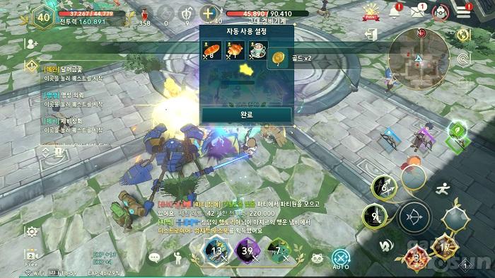 자동전투는 우측 하단의 사냥 모드 전환 버튼을 AUTO로 전환하면 발동되며, 주변의 적들이 있다면 캐릭터 스스로 사냥을 진행한다. 쉬운 사냥을 위한 편의성 기능이지만, 상세 설정을 통해 거리나 스킬을 설정하면 조금 더 자동 전투의 효율을 높일 수 있다.