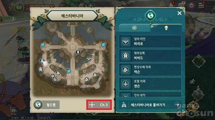 지도 하단에 위치한 채널이동 버튼을 통해 채널이동이 가능하다 = 게임조선 촬영