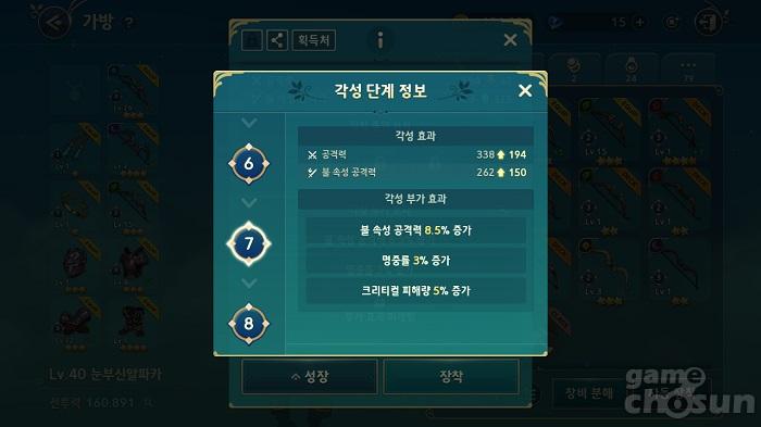 3성 무기를 7각성할 경우 강력한 옵션의 '각성 부가 효과'가 개방된다. = 게임조선 촬영