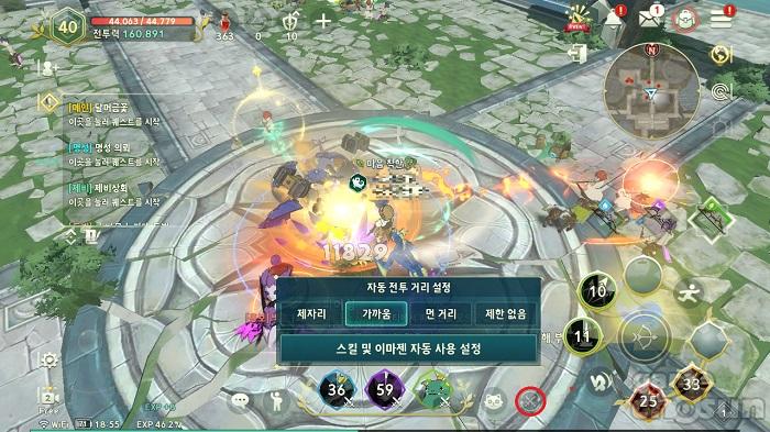 자동 전투시 캐릭터의 인식 범위를 조절할 수 있는 자동 전투 거리 설정 = 게임조선 촬영