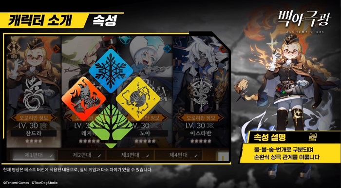 ‘백야극광’은 캐릭터 스킬과 이동 경로 등에 의한 고도의 전략성이 요구되며 5명의 캐릭터를 한 팀으로 조합해 타일식 맵 위에서 전투를 진행한다.