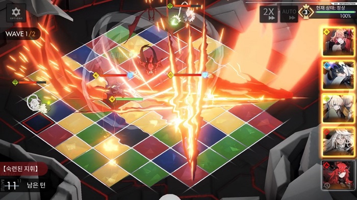 여기에 같은 색상의 타일을 15칸 이상 연결 시 극광 연쇄 ‘오로라 타임’이 발동, 한 번 더 타일을 연결해 적에게 막강한 피해를 입힐 수 있다.