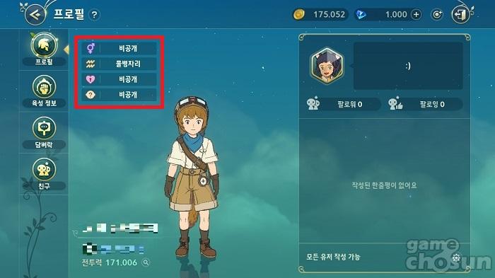 소셜 메뉴에서 확인할 수 있는 프로필 태그 = 게임조선 촬영