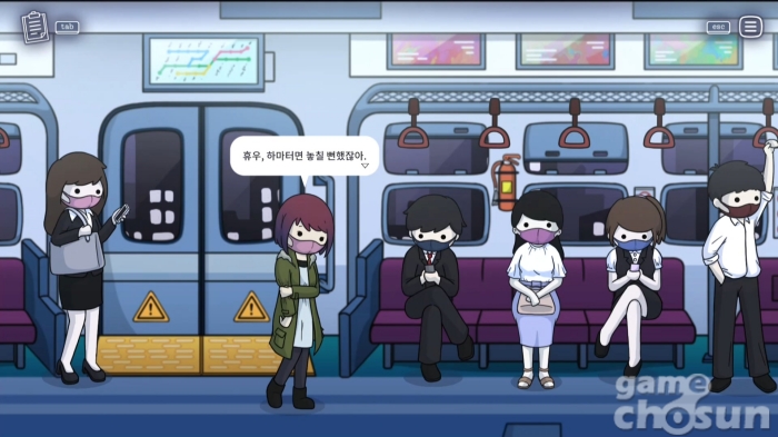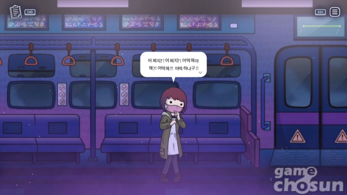 집으로 가는 전철을 급하게 탄 주인공 = 게임조선 촬영