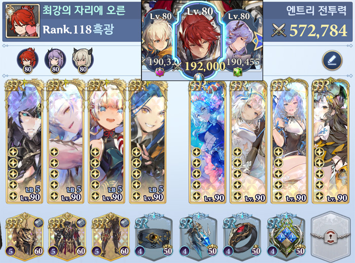 '흑광' 유저의 엔트리는 지난주까지 사용하던 '세리아드'를 빼고, 준을 추가해 '나마리에, 준, 카이토' 조합을 사용하고 있다. 보통 유저들이 엔트리를 변경하면 그 영향으로 전투력이 하락하거나 정체되기 마련인데 그런 영향 없이 이전 주와 거의 비슷한 폭의 상승을 이뤄내고 있다는 점이 '흑광' 유저의 저력이라 말할 수 있다.