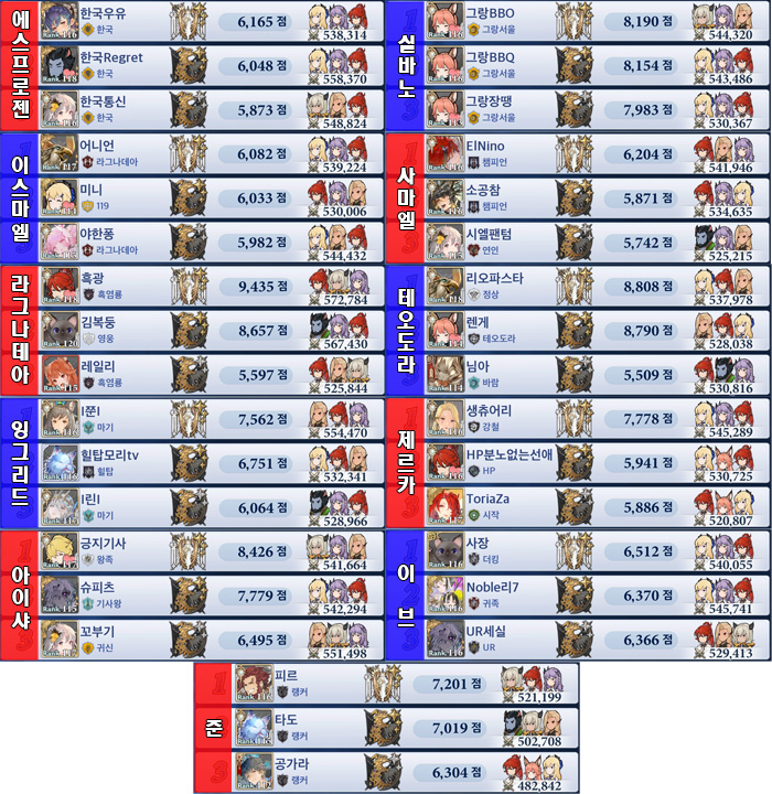 * 전투력 등 각종 순위는 결투장 랭킹 TOP5에 입성한 게이머 기준이므로 누락된 게이머가 있을 수 있습니다.