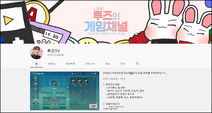 무소과금을 위한 공략 영상을 제작, 게재하는 유튜버 '투즈' = 투즈TV 채널 갈무리