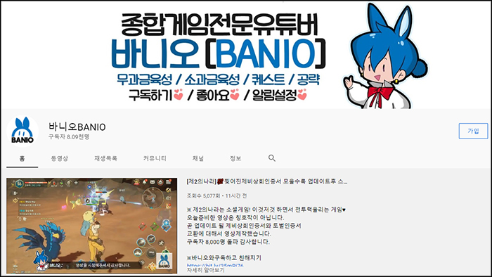이번에 인터뷰를 나눈 '바니오'는 최근 제2의 나라를 플레이하며 무소과금 유저를 위해 공략 영상을 만들고 있는 종합 게임 전문 유튜버다. 출시 전부터 다양한 정보를 수집하며 쌓은 노하우와 여러 게임을 플레이하며 다진 편집 실력으로 제2의 나라 유저들에게 유용한 영상을 다수 게재하고 있다.