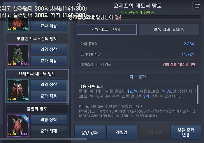 저같은 경우는 영웅 망토와 요제프 망토를 스왑하면서 사용하고 있습니다. 벨트의 경우에는 미사일 볼트와 썬더볼트 벨트를 주고 사용합니다. 미사일 볼트 벨트는 일반 스킬 초기화 효과 덕분에 활용하고 있으며 썬더볼트 벨트는 스톰 스크리머에게는 최적화된 벨트라고 생각합니다.