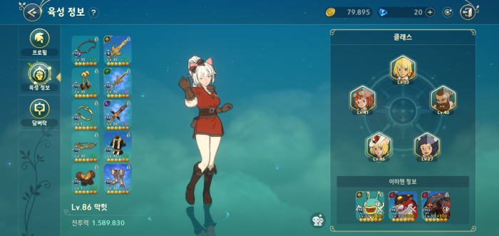 막힛의 계정 내 캐릭터 레벨과 장비에 변화가 생겼다. 우선 본 캐릭터 위치의 레벨은 집계 당시 86레벨, 기사 작성 시점인 12일에는 88레벨을 달성하며 초고속 성장을 보여주고 있다. 또한 그동안 27레벨에 머물렀던 부 캐릭터들이 최고 41을 달성하는 등 어느 정도 성장한 모습을 보여줬다.