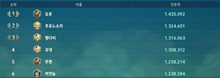 ■ 막힛 1위 탈환, 상위 3인 전투럭 160만 돌파