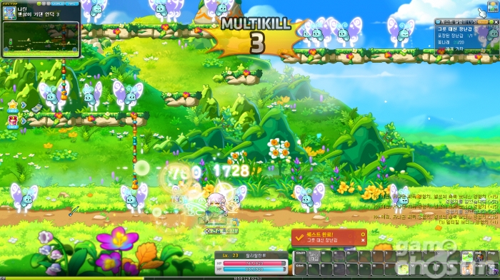 엄청난 범위를 자랑하는 분출된 정령과 함게 맵의 몬스터를 쓸어담을 수 있다 = 게임조선 촬영