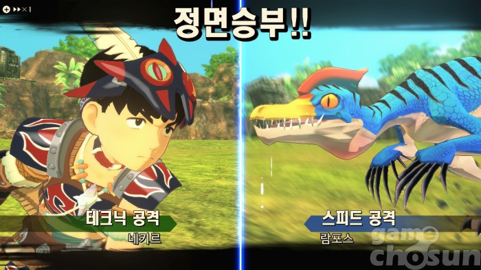 정면 승부와 더블 어택을 잘 활용하면 자신보다 훨씬 강한 몬스터도 이길 수 있다 = 게임조선 촬영