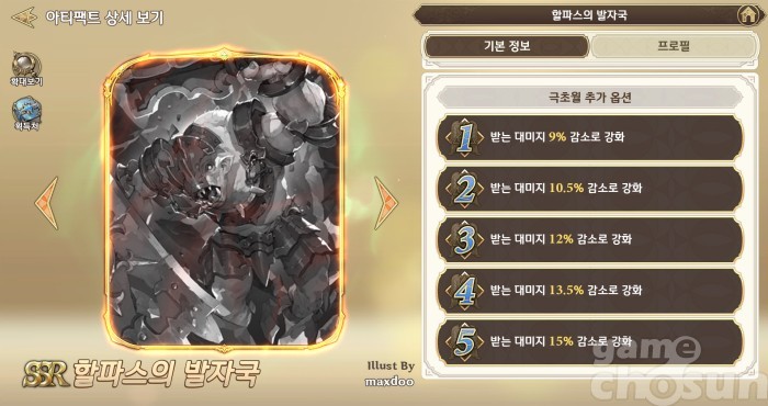 받는 대미지 감소량이 아티팩트 중 가장 높은 '할파스의 발자국' = 게임조선 촬영