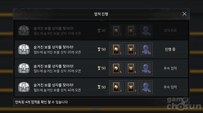 특히 보물상자는 플레이어가 예상치 못한 곳에 숨겨져 있으며 보물상자 개봉 시에는 '아바타 소환권' 혹은 '탈 것 소환권' 등 매우 귀중한 보상을 얻을 수 있다. 또한 보물상자를 10개 오픈할 때마다 업적이 완료돼 아바타 소환권과 탈 것 소환권을 추가로 획득할 수 있으며 훈장도 주어지기 때문에 결코 놓쳐서는 안되는 콘텐츠다.