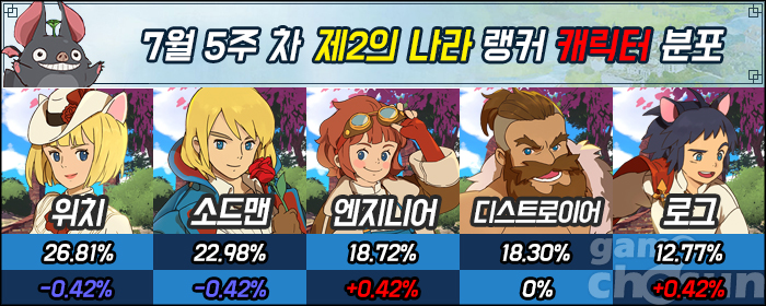 하지만 디스트로이어가 우직하게 자신의 자리를 지킨 사이 엔지니어가 0.42%의 기적으로 새로운 3위에 올랐다. 디스트로이어와 차이는 딱 0.42% 차이다. 불과 랭커 한 명 수준의 차이로 캐릭터 분포표가 5주 만에 새롭게 쓰인 것이다.